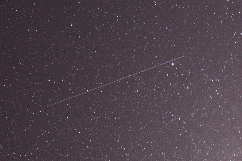 One of the problems with imaging meteors today is that the sky is now so full of man-made objects that you are far more likely to record them than a meteor. To the eye a meteor is obvious because of its fast movement and short duration. On a photograph this shows up a streak of light, but so do satellites and it can be easy to mistake a satellite trail for a meteor, particularly if you weren't watching at the time.